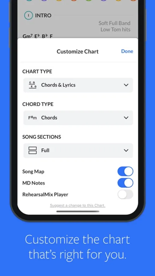 • Chart Type options (Chords & Lyrics, Lyrics, or Song Map)