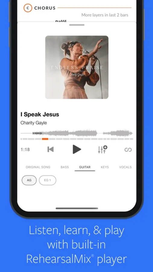 • Teams with RehearsalMix can listen to the original song with a specific instrument turned up or down!