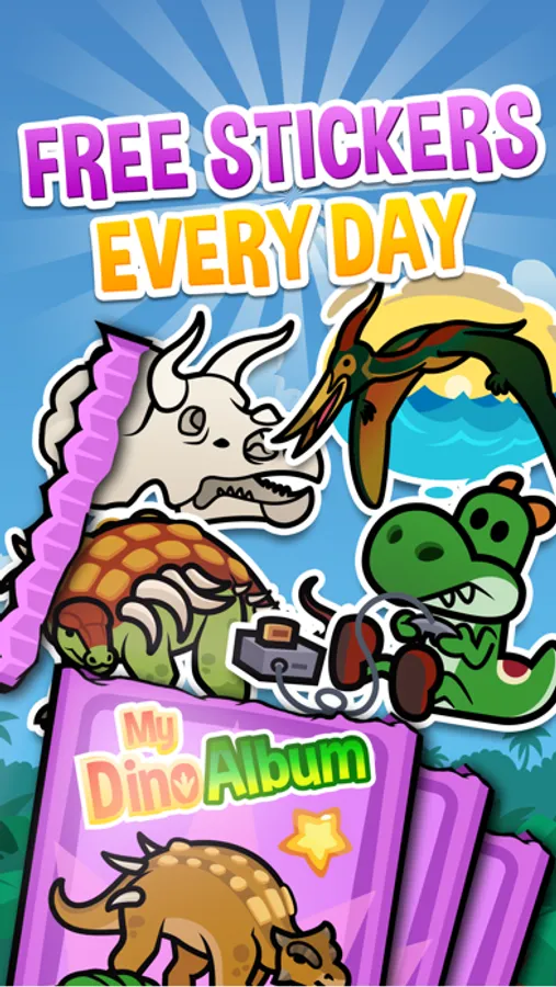 Practice your archeology skills: unveil different dino breeds and have tons of fun with your friends, trading repeated stickers and trying to collect them all!