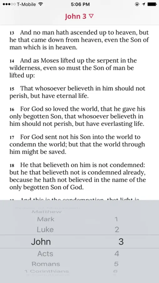 This bible app strives for simplicity. All navigation is easy to find and accessible at the top of the screen and at the end of chapter, so you can quickly move around. It doesn't have any complicated features, and it doesn't send you push notifications. This app is for those who enjoy the pure, simple joy of reading the bible, unencumbered.