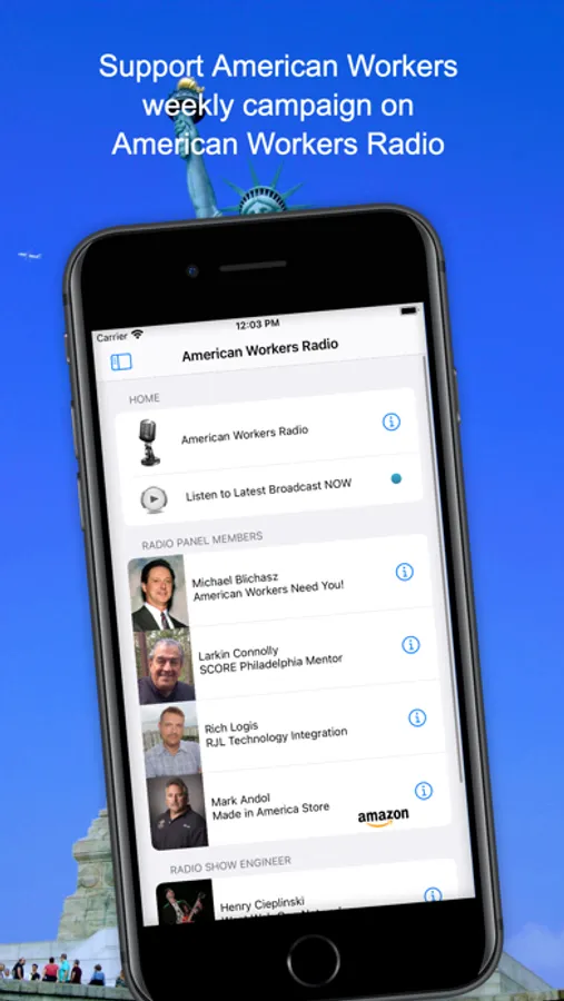 With our mobile app, you can participate in the "Made in America" movement by visiting our Home site, as well as accessing our Radio Panel Member sites...ALL IN ONE PLACE!
