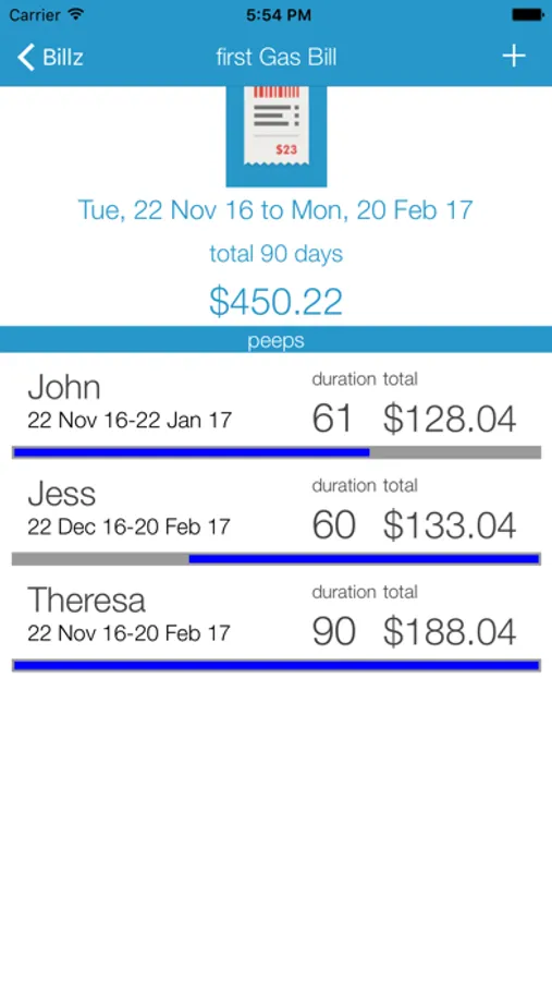 Just add the bill details, then add in all the people, and how long they are staying, and we will calculate how much each person owes.