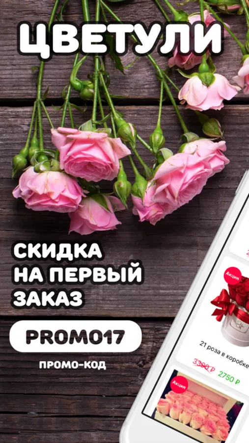 Качайте приложение и мы подарим вам подарок - скидку на первый заказ по промо-коду PROMO17