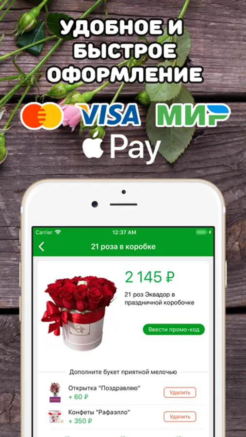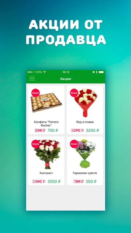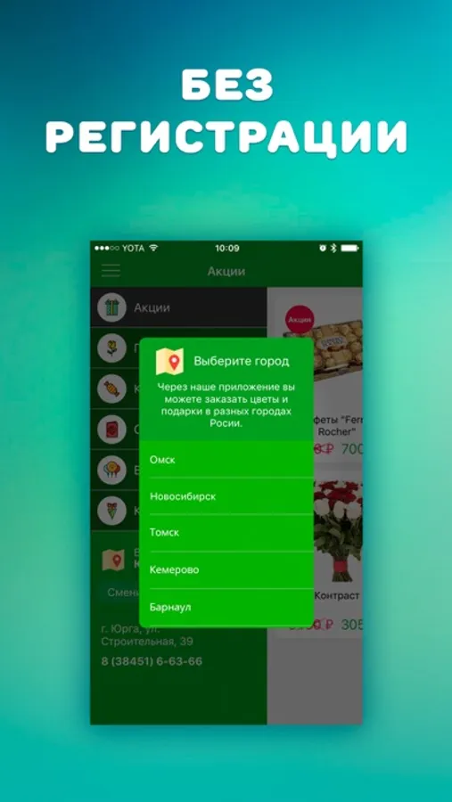 - Приложение без регистрации. Минимум шагов для поиска и заказа доставки цветов.