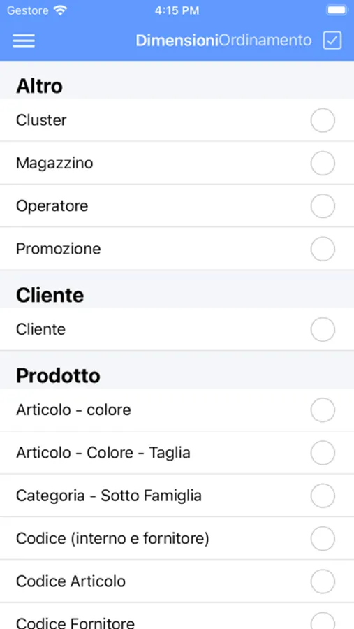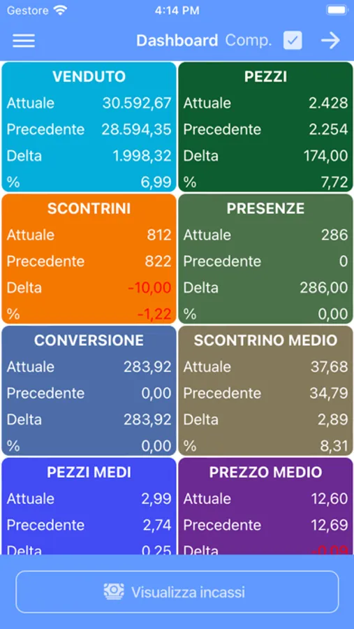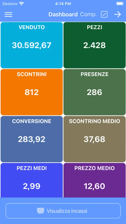 L’APP, sviluppata per i manager delle aziende (Direttori Vendite, Capi Area, Visual, Store Manager, ...), provvede a fornire informazioni fondamentali sull’andamento delle vendite. Sono fornite tutte le principali KPI aziendali relative alle vendite al dettaglio, presentate inizialmente in modalità aggregata per poi, in maniera semplice e veloce, scendere nel dettaglio fino ad una analisi approfondita.