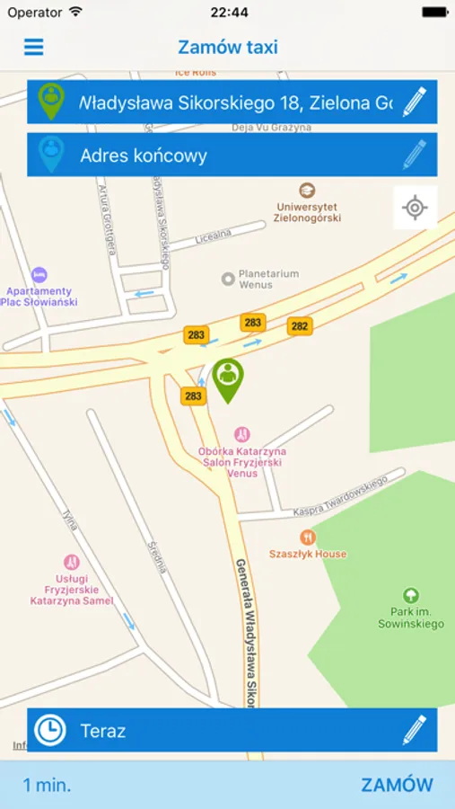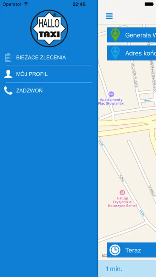 Application for ordering a taxi in Hallo Taxi Company. Located in Zielona Góra.