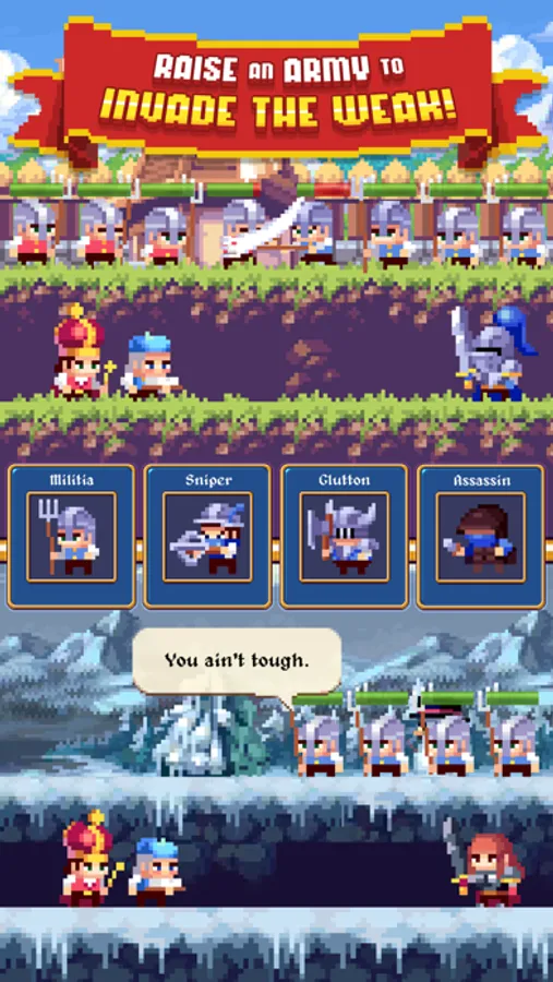 +Raise armies full of gluttons, snipers and assassins to smash the King's foes.