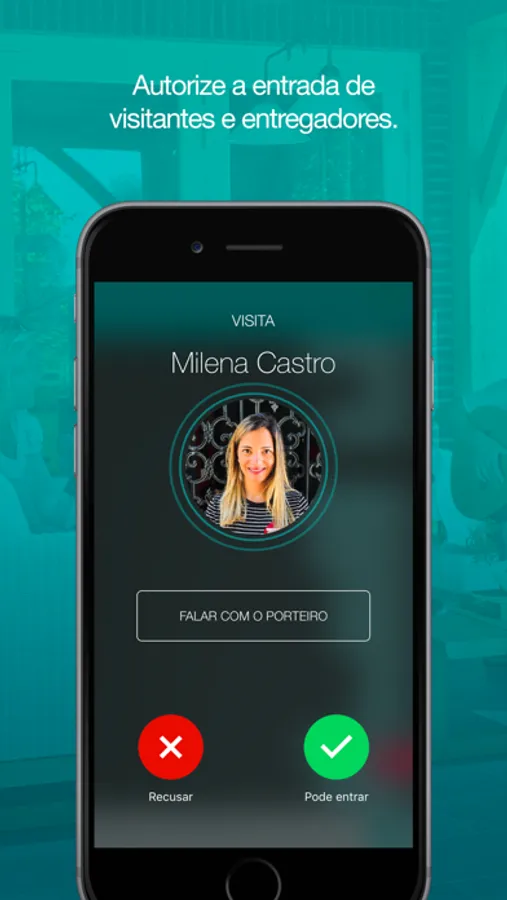 Autorize a entrada de visitantes e entregadores pelo seu celular. Não precisa mais interromper o filme, pra ir ao interfone - temos horror a coisa com fios.