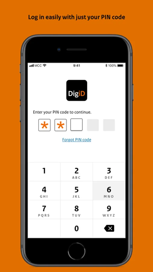 1. On your phone or tablet you log in with just a pin code.