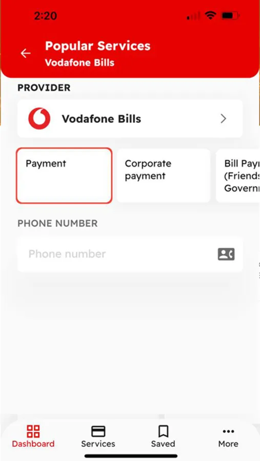 Add your bank card, master card, Visa and Meeza cards to recharge your credit, pay all your monthly bills and much more