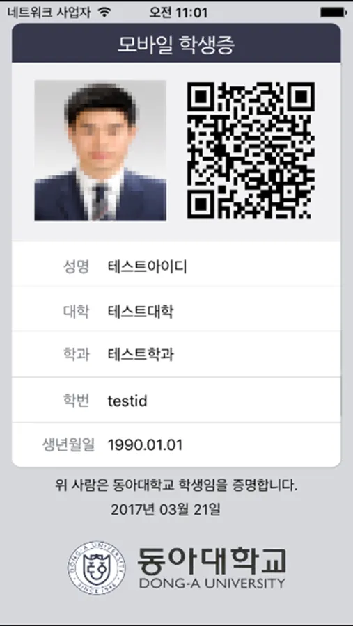 동아대학교 학생증앱 입니다.