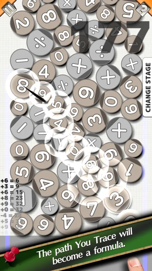 "SUKOH" is a stoic calculation puzzle game. Trace a single line over the numbers and symbols that fall from the top of your screen to create formulas whose answers match the values given in the challenge questions.