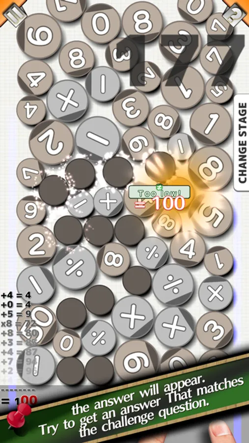 The game is designed with two different modes. “Puzzle” mode has no time limits, allowing you to take on the calculations slowly and pensively; “Trial” mode races you against the clock to see how many correct answers you can churn out within the time limit.