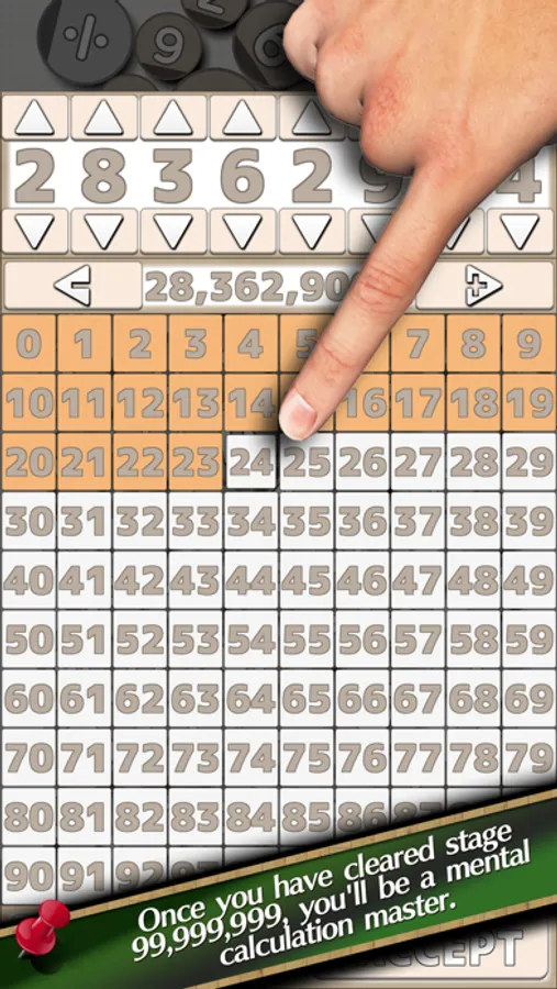 Once you have cleared 10,000 stages, you will likely be ready for calculations using three digits and even negative numbers.