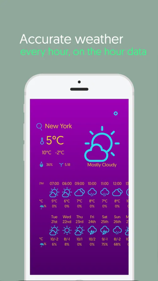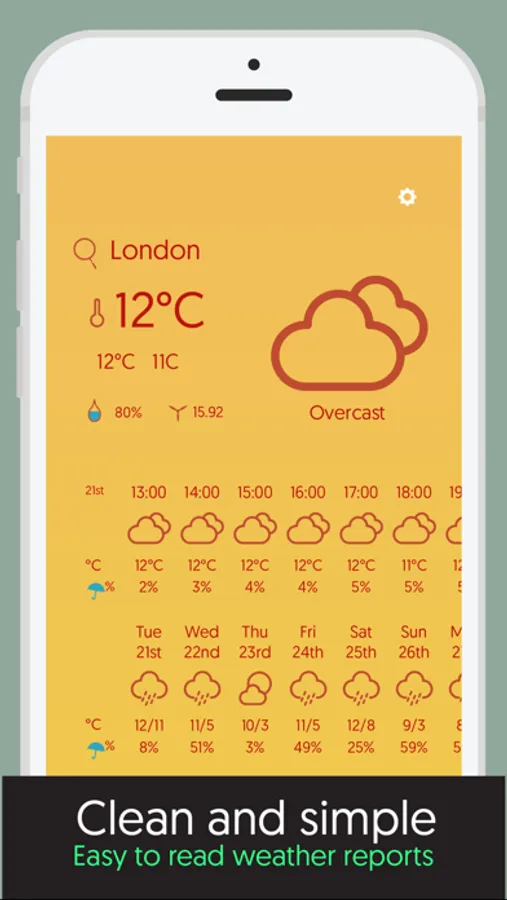 Rain or Shine - Weather Forecast has a simplistic design that displays the data you need in a very easy to read way. Easy to understand weather icons will let you see the current weather condition at a glance. Get daily 7-day and hourly reports on the very same screen - responsive data at your fingertips. Hourly reports update on the hour every hour.