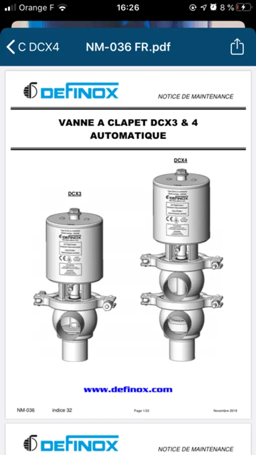 Application for the identification of DEFINOX valves (name of the valve – its reference – diameter – sealing, with the necessary literature and support for its maintenance (documentation, videos, list of spare parts and tools).