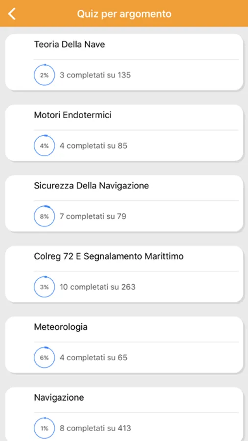 - quiz per argomento → scelta di uno o più argomenti su cui allenarti.