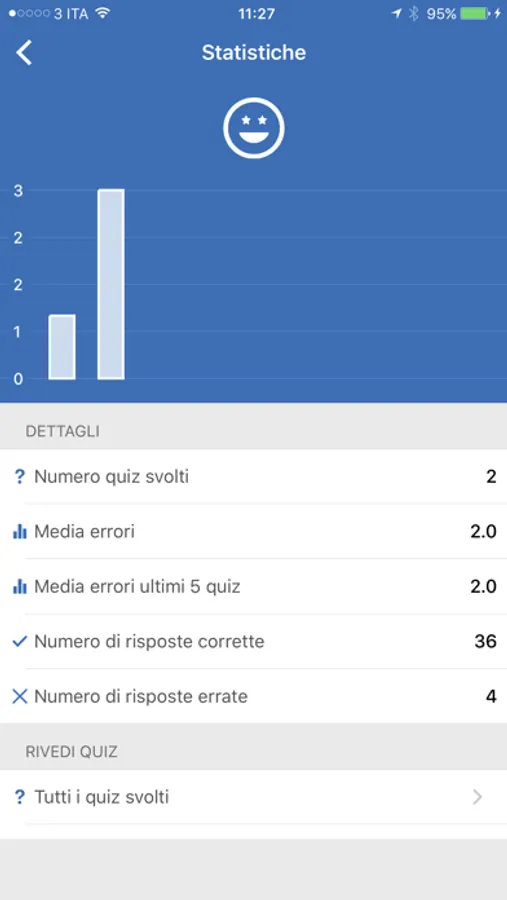 - statistiche → vengono create automaticamente per farti vedere il tuo andamento, riguardando anche i quiz svolti oppure solo gli errori commessi.