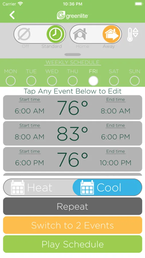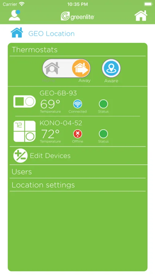 NOTE: The Greenlite app is compatible with G2 and AIRZ thermostats.