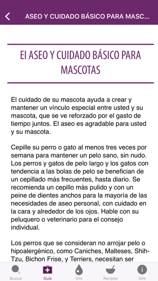 Una aplicación única condensada del libro popular! “Mime a su mascota” enseña rápidamente cómo usar con seguridad y eficacia los aceites esenciales para más de 50 problemas de salud animal.