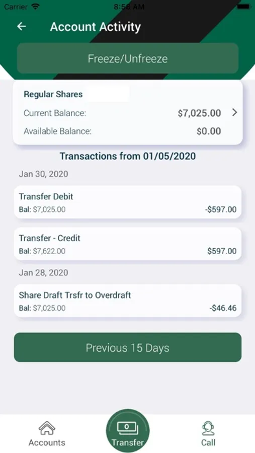 - Transfer Funds