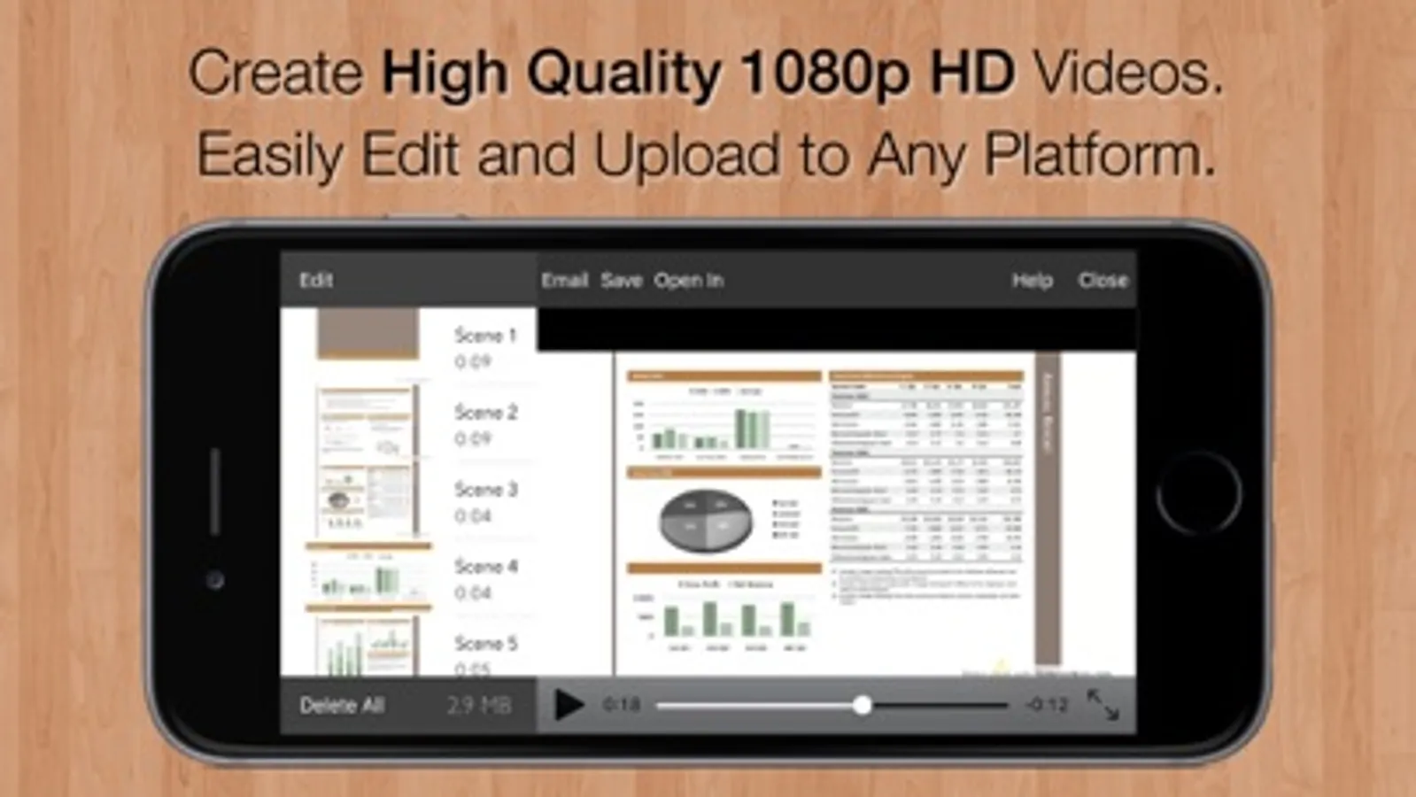 Unlike with online presentation services, you retain 100% control over your slides and videos. Your content never leaves your iPad, unless you choose to share it or backup to iCloud. Email videos directly to only your colleagues, or upload them to the service of your choice.