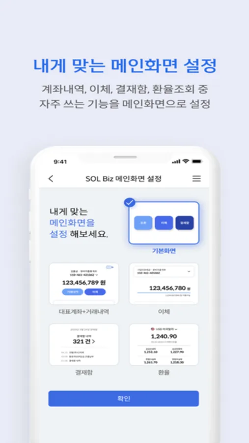 ※ 설정 > 쏠 비즈 메뉴에서도 설정하실 수 있습니다.