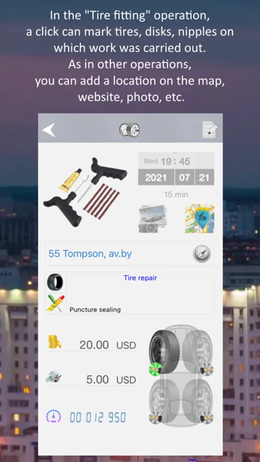 * Tire and nipple selections in "Tire Service"