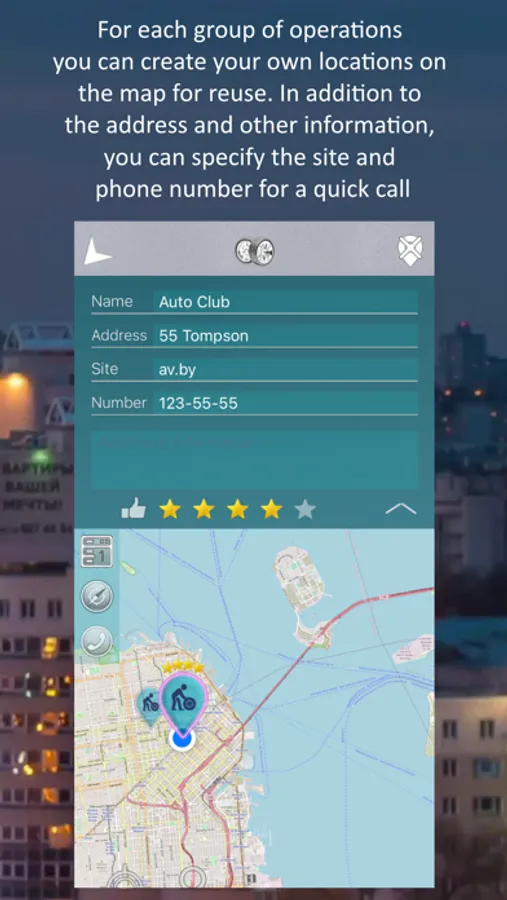 - for the location on the map you can set the site, phone and other fields, the site and phone are used for quick access;