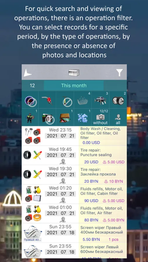 - odometer can be specified for any operation, but it is not obligatory, as an approximate value is automatically calculated where not specified;