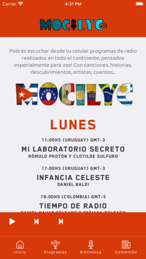 Podrás escuchar desde tu celular programas de radio realizados en todo el continente, pensados especialmente para vos! Con canciones, historias, descubrimientos, artistas, cuentos…