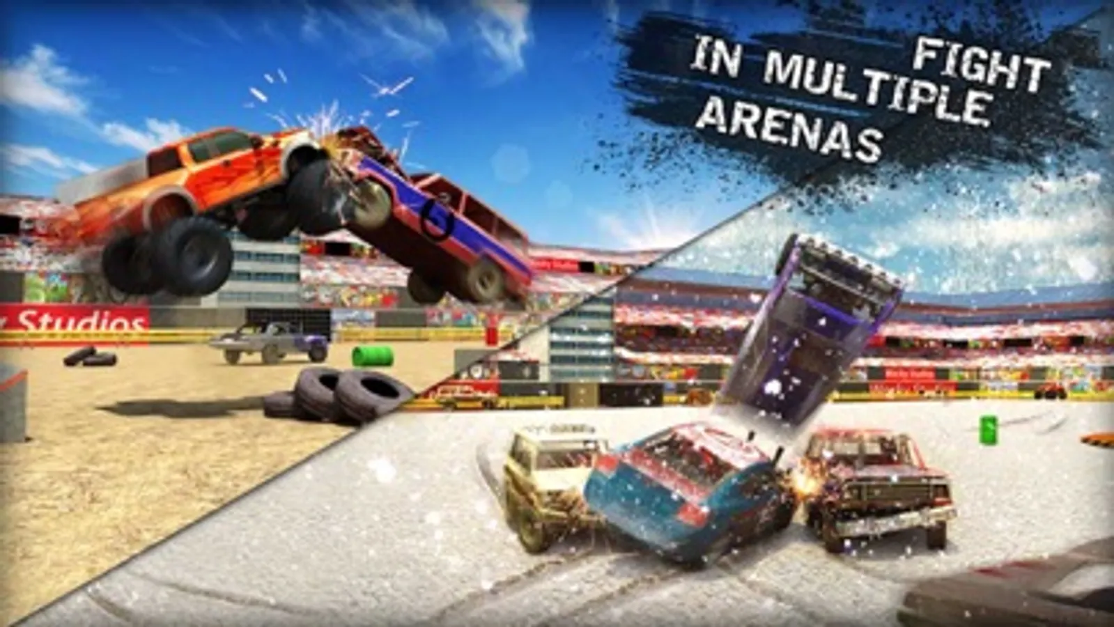 Launch yourself between chaos among destruction rivals, hit the gas pedal to increase auto speed and hold on tight, you’re in for the ride of your life. Smell petrol fumes in survival arena and enjoy vehicular combat crash racing. Destroy opponents in demolition derbies and full track speedway racers that will offer you the thrill of a lifetime. Rules of demolition derby consists of muscle car drivers competing by deliberately ramming their monster vehicles into one another. Hit, thrash and knockout the rivalry to become last derby driver in epic multiplayer battle arena. Choose from range of derby cars or monster trucks and drive to smash and thrash in knockout racing war. Ride bumper cars on dirt tracks and win through strengthen your endurance race. Hit through crazy car wreckage mode to crash opponents and survive to be the last car standing after racing carnage. Choose among 3 thrilling death race modes along with real flying car combat. Ride on spectacular frozen tracks and sand arenas across the countryside for endless destruction driving mania.