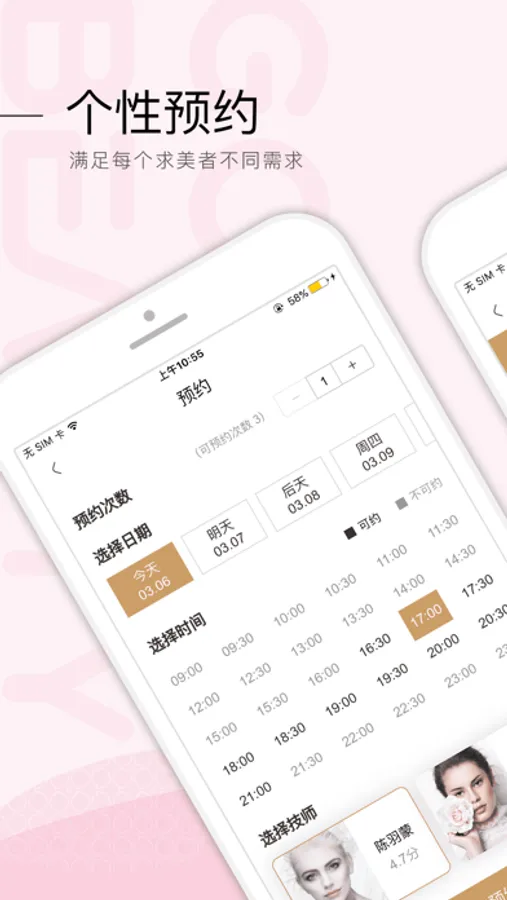 来了就美是涵盖美容、美体、SPA项目的互联网app平台,服务于年轻化美丽需求的人士,提供app线上预约、线上结算,动动手指一下单就可以了。赶紧下载app一起开启变美之旅吧!