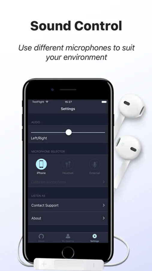 Simply plug in your earphones and move the button on the slider to personalize the sound for maximum speech clarity and amplification. Only works with wired earphones.