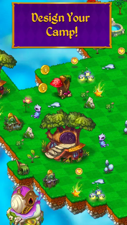 Hatch dragons, then evolve them to make them grow even more powerful! Encounter and solve challenging puzzle levels: match the Gaia statues to win, then bring rewards back to your Camp to collect and grow.