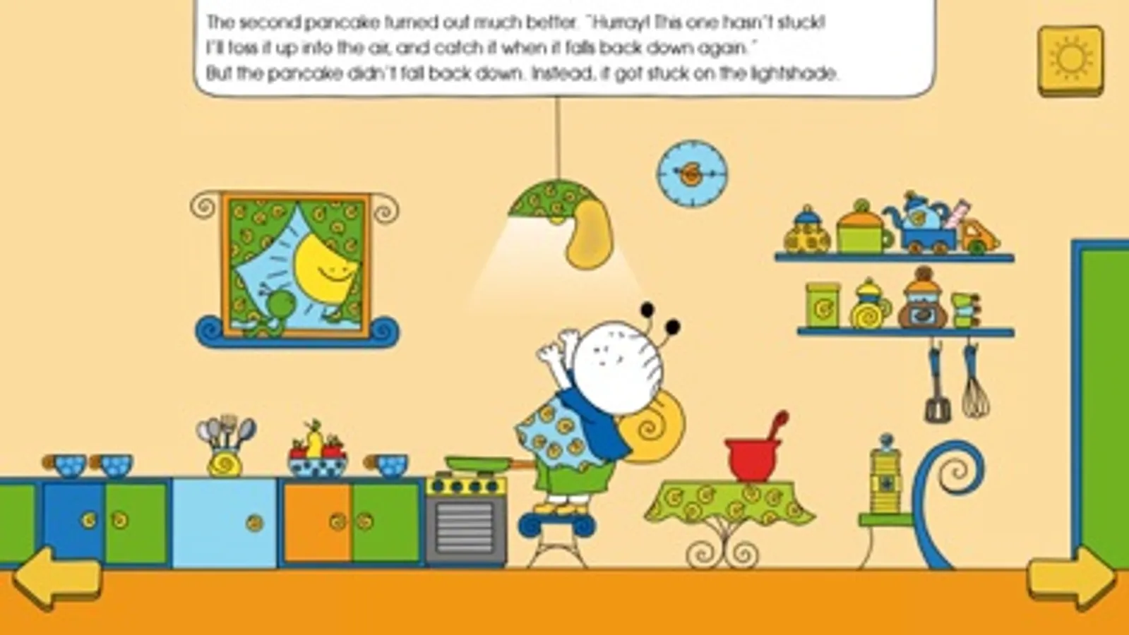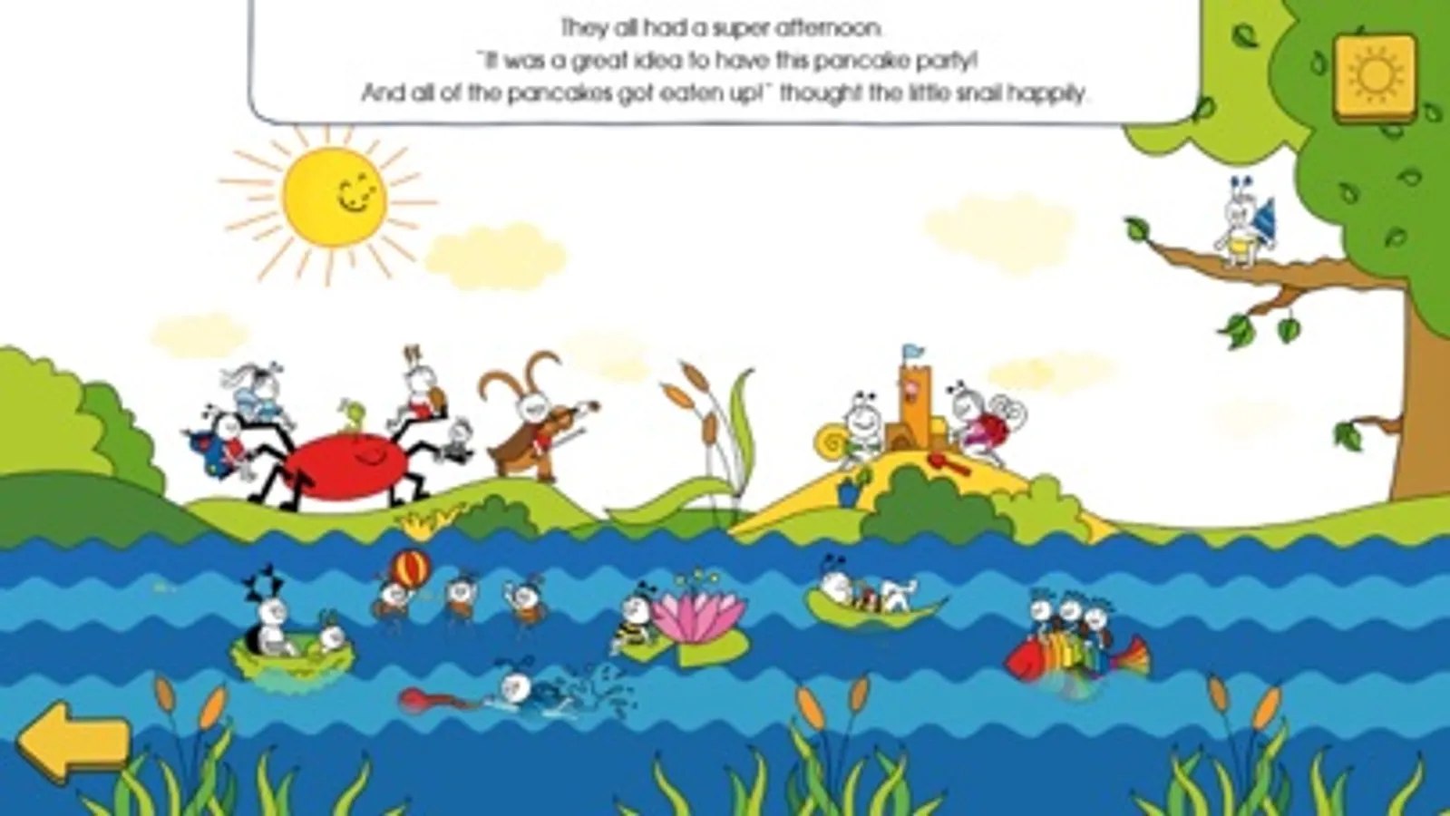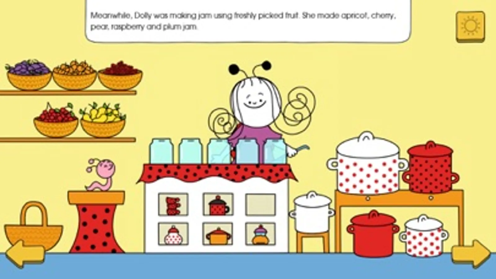 The Berry and Dolly tales features Dolly, the ladybird girl, and Berry, the snail boy. The application made from the Summer Tale of the Four Seasons Book is about Berry, who struggles with making pancakes. Dolly saves the day so that they can eat lots of pancakes together with all their friends on the riverbank.