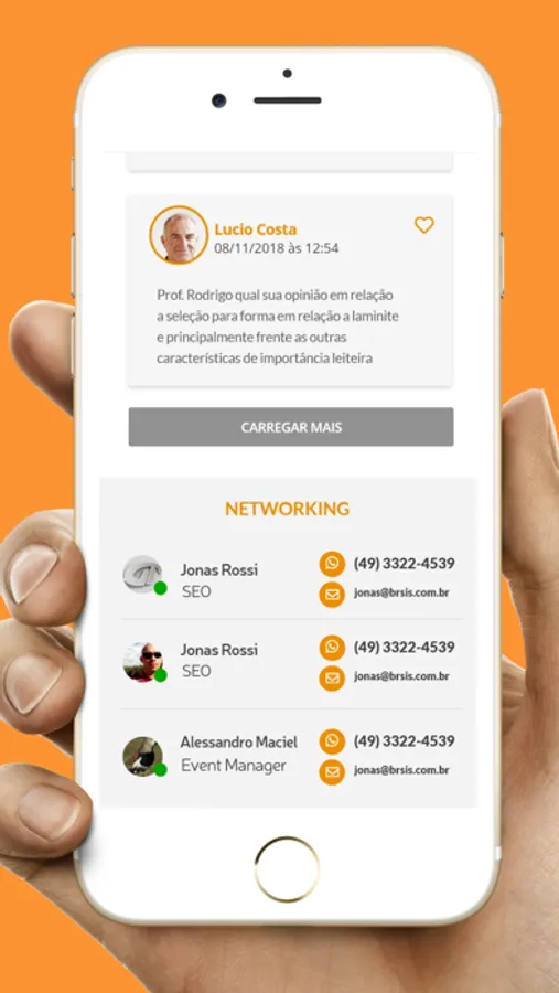 No aplicativo estão disponíveis informações e notícias sobre o evento, além de área de interação entre os participantes para você aproveitar ao máximo o evento.