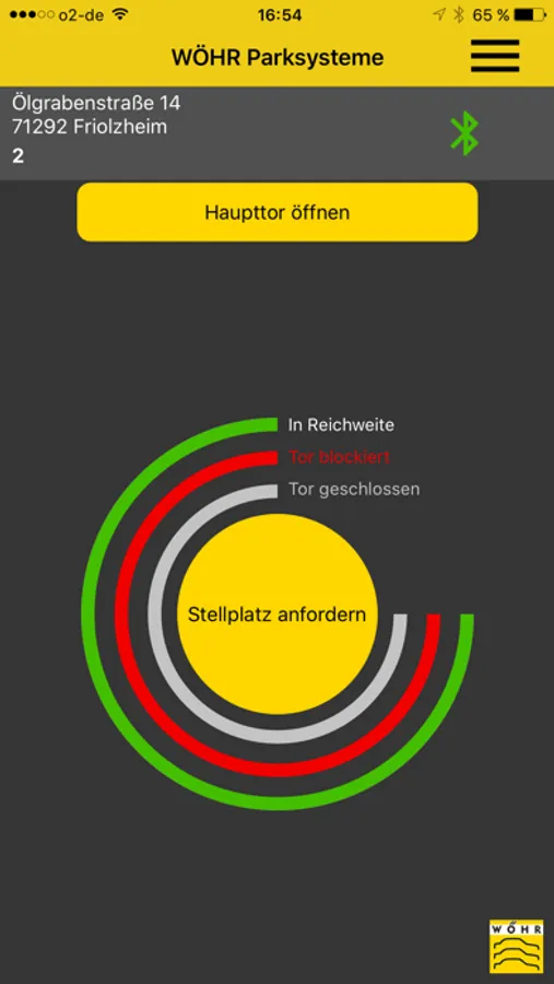 Each user (owner or tenant of a parking place in a WÖHR car parking system) is provided with an individually generated parking place QR code, directly by WÖHR. A barcode scanner is used to acknowledge the QR code, after which the driver is provided with authorisation to access the relative parking place. The communication between the App and the system is provided via the most recent Bluetooth Low Energy or Bluetooth. Smart featuring an operating range of approximately 10 to 15 metres - for comfortable parking place selection by the user, directly from the car. Underground garage access doors installed by the customer can also be integrated into the new controls for operation via the Smart Parking App.