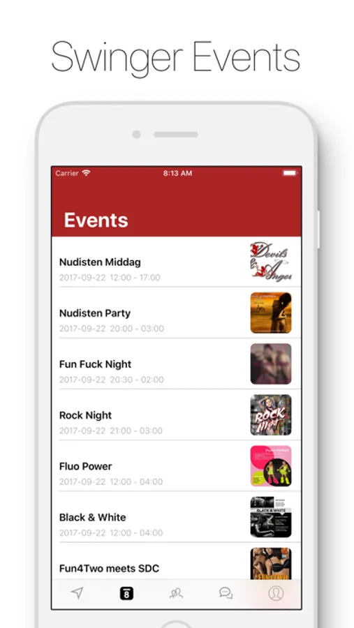 What distinguishes us from other platforms is that we offer a very accessible swingers App which brings together everything Swingers area such as parties, clubs, vacations, private parties, erotic shops, events, themes, fairs, wellness.