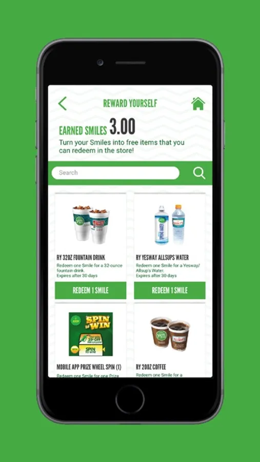 The Yesway Rewards program rewards our most loyal customers. Use your Rewards card in stores and at the pump to earn points. For every 250 points you earn, you’ll receive a Smile. Smiles can be redeemed for FREE stuff like freshly-brewed coffee, fountain drinks, Yesway swag and more!
