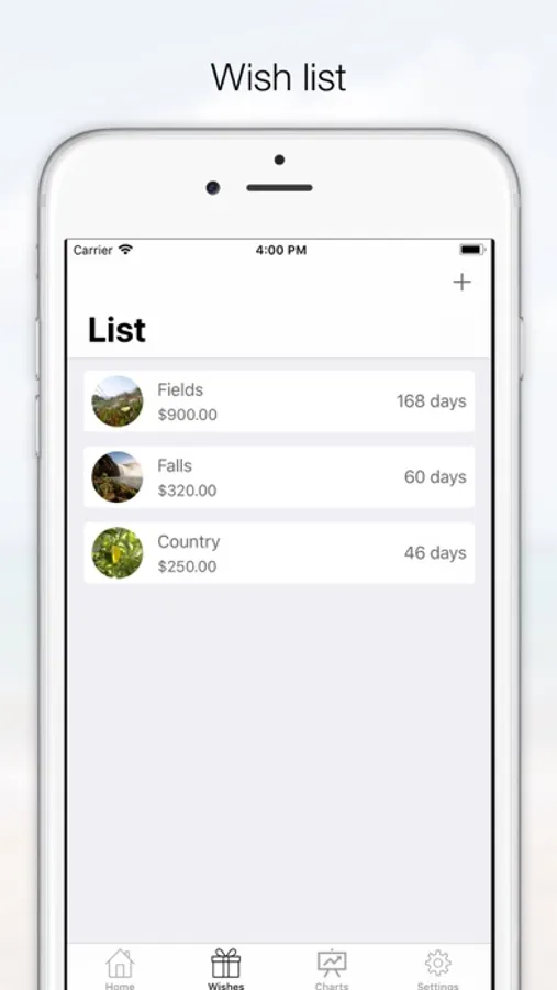 - Insert an object you would like to buy in the wish list, add an image by taking a picture or selecting it from the library, and the application will calculate how many days it will take to get it on the basis of available balance.