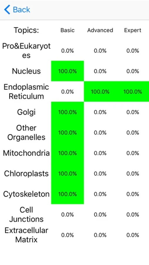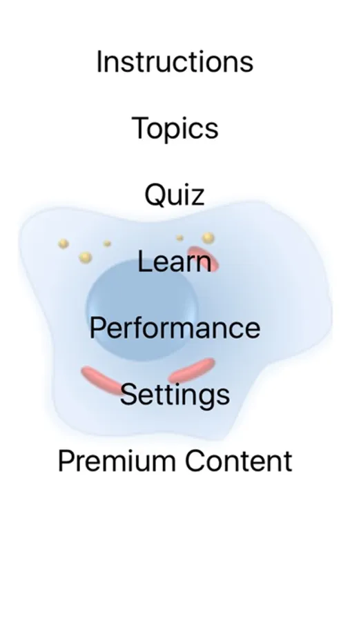 All functions, nine sections of review material, and over 360 randomized multiple choice and flashcard questions covering the fundamentals of cell biology and cell organelles are free. Upgrade once to access over 860 questions, additional study topics, and disable ads.
