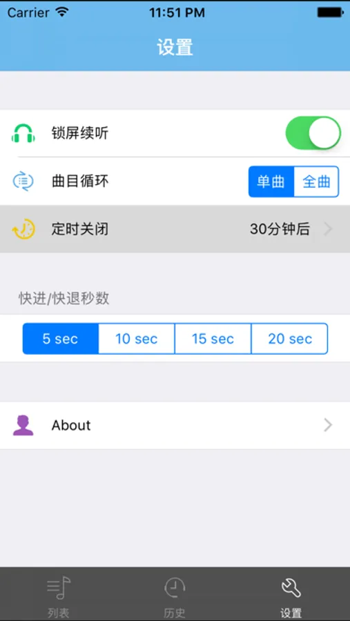 5.可以设置播放时间,比如想播放30分钟,设置后,30分后自动停止,并记忆停播的时间点