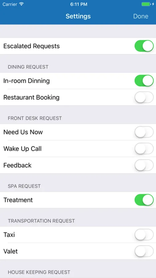 With a live dashboard and push notifications, Requests are tracked and detailed by your staff, meaning requests don't get 'lost'. Each User can be setup with 'notification' rules so that a manager, for example, can be notified if a Housekeeping requests hasn't been fulfilled in 45 minutes.