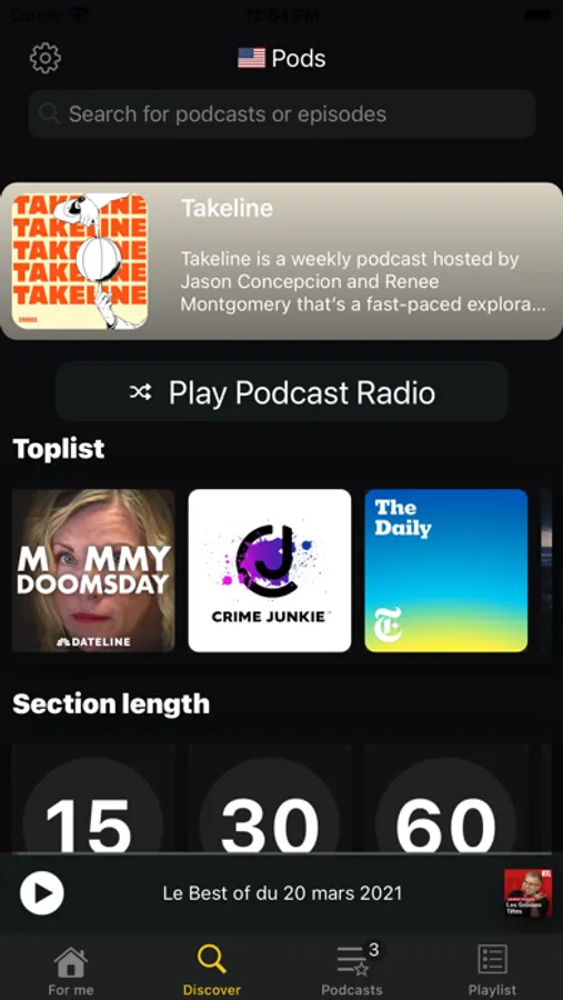 - Section Length and Title Search: Search by section length (15, 30, 60, 120min) or podcast title.