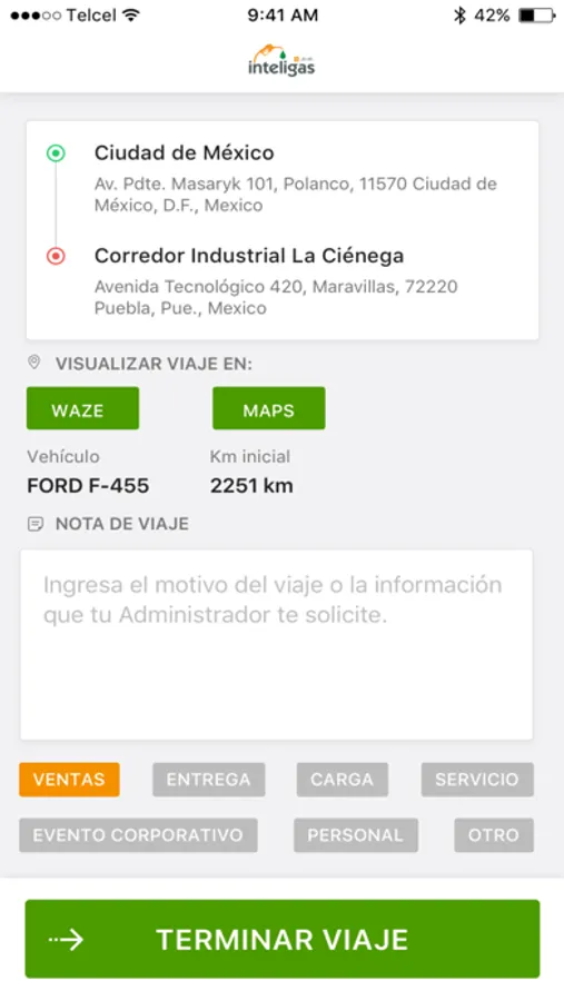· Registrar datos de viajes como el motivo, odómetro y más.