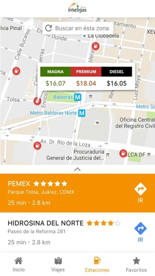· Ver el mapa de gasolineras con los precios actualizados del combustible