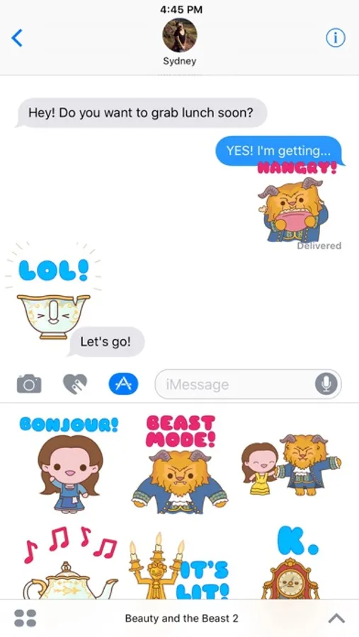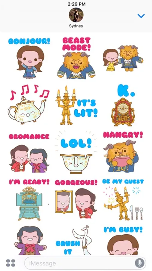 Add enchantment, dancing, singing, and a bit of bromance to your messages with the new, animated Beauty and the Beast stickers! This pack includes iconic characters like Belle, Beast, Lumiere, and more—plus special accessories.