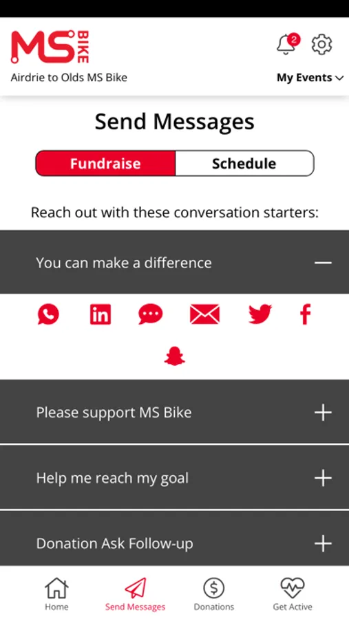 Do your fundraising on the go with your MS Bike application. Update your page, send emails, check your progress, and connect to the integrated feature Apple HealthKit to track your physical activity with other MS Bike participants and teams – all from the palm of your hand. MS Bike application is a great tool to track your fundraising progress, and to keep current on all MS Bike news!