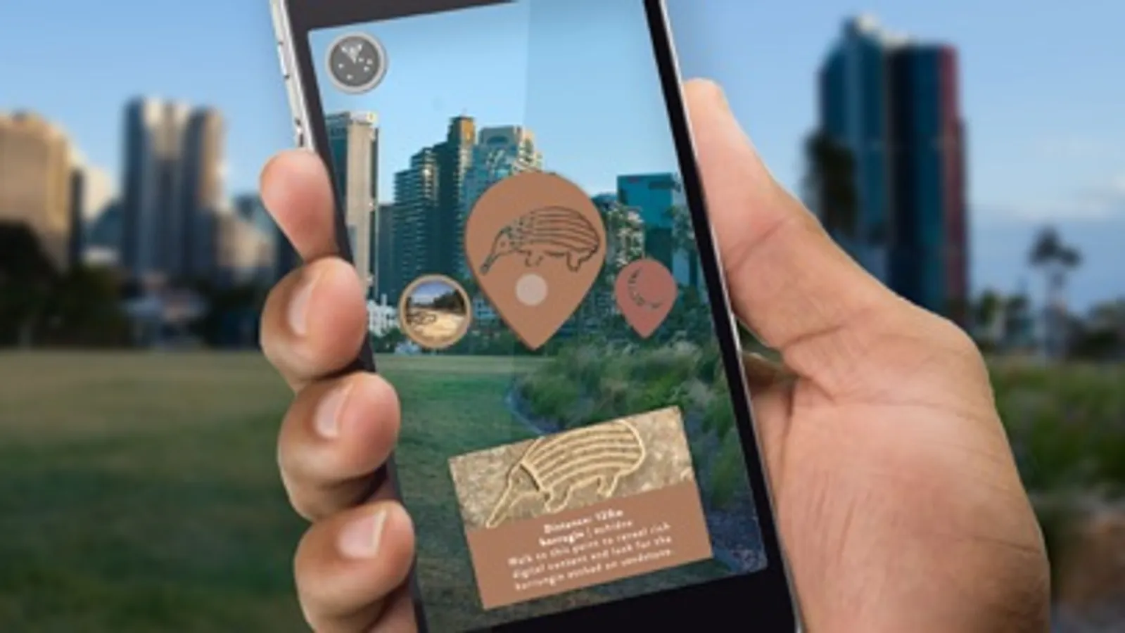 The Barangaroo Ngangamay app uses AR (augmented reality) technology to showcase the strength, diversity and creativity of Aboriginal women, men and children of the Sydney region. Download the app to your smartphone or tablet to experience culture shared by Aboriginal people at the Barangaroo Reserve. The app charts your location and reveals stories, song cycles, language and rock engravings hidden in the site. Outside of the Barangaroo Reserve, use the app to scan specially marked postcards and other Barangaroo publications to access extra content.